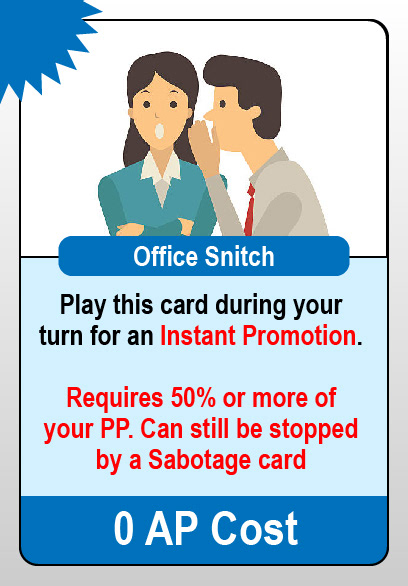 It's a race to become CEO. The first player to climb the ranks in the office and make it to the top floor becomes the CEO and ultimately in charge of all the other underlings. Be the first to reach your next promotion, in a game of teamwork, bribery, sabotage and a little bit of brown nosing!